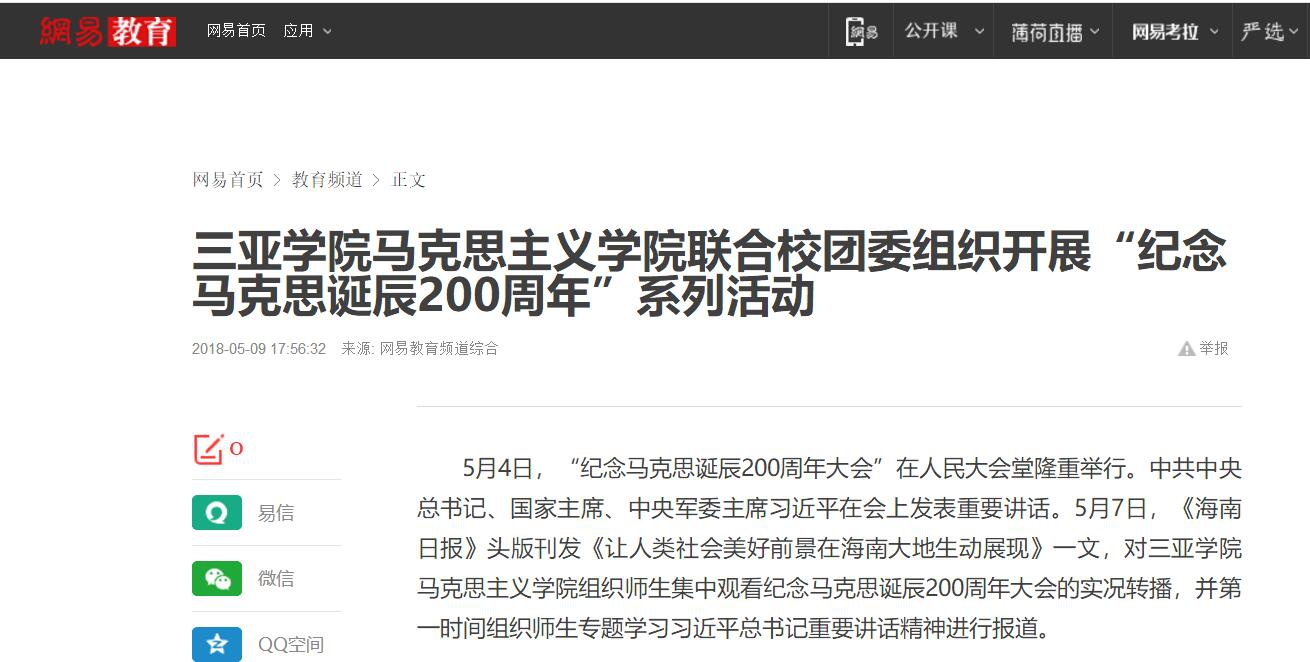 人民网海南频道报道我校纪念马克思诞辰200周年活动