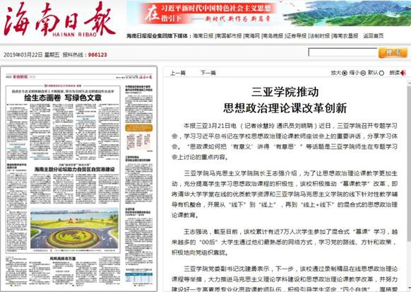 3月20日,我院召开学习习近平总书记在学校思想政治理论课教师座谈会上的重要讲话专题学习会。本次专题学习会吸引了《海南日报》、海南电视台和三亚电视台等媒体关注。
