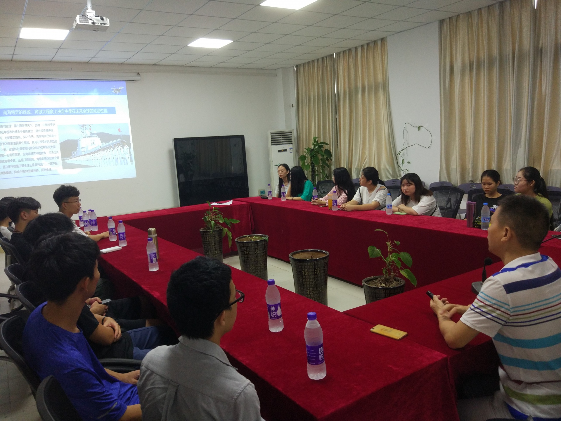 5月22日下午,我院教师于世高博士于马克思主义学院二楼会议室主讲题为“南海博弈中中美关系的战略内涵”的学术讲座。于世高博士首先简要回顾了中美双方在经略南海中的历史特点、政策演变,然后认真分析了中美南海博弈现状的守成与复兴的背后深层原因,客观比较了中美双方在南海博弈中的利弊得失,最后基于中美关系的贸易摩擦情况,双方盛衰的未来发展趋势和我国应该采取什么样的措施,从大战略角度,与参与讲座的师生进行讨论和交流。