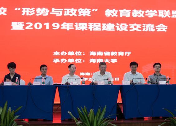 5月25日上午,海南省高校“形势与政策”教育教学联盟揭牌仪式暨2019年课程建设交流会在海南大学中日友好交流中心举行,我院李超超老师参加揭牌仪式和交流会,教育部思政理论课教学指导委员会副主任、“形势与政策”课教学指导委员会主任高德毅;海南省教育厅副厅长孔令德、思政处处长文强;海南省高校思想政治理论课教学委员会主任委员赵康太;海南大学党委常务副书记廖清林,党委常委、宣传部部长谭勇;四川师范大学、形势与政策教研室主任范锡文出席仪式。来自全省各高校的“形势与政策”教育教学负责人及教师代表近200人参加揭牌仪式和交流会。