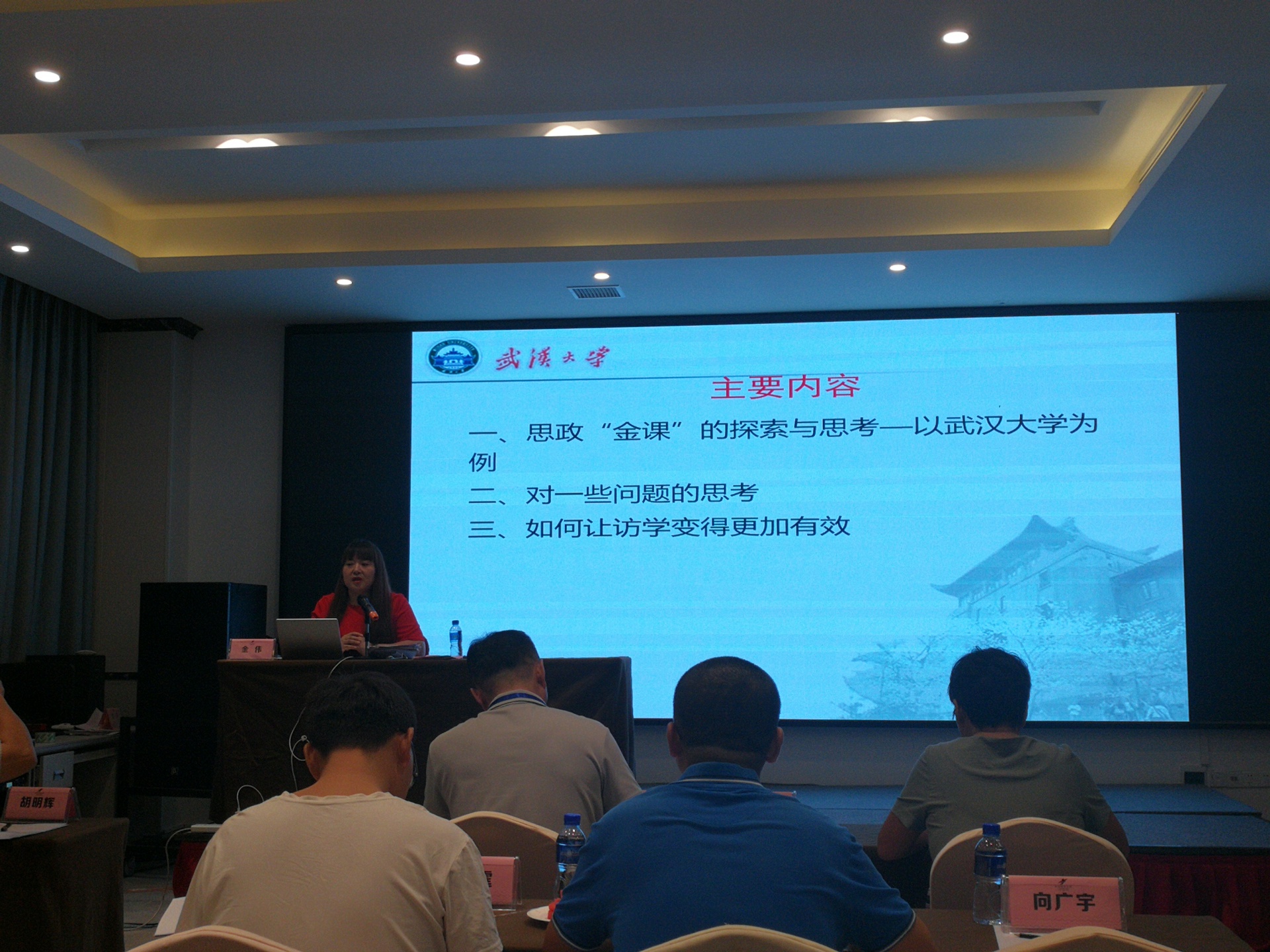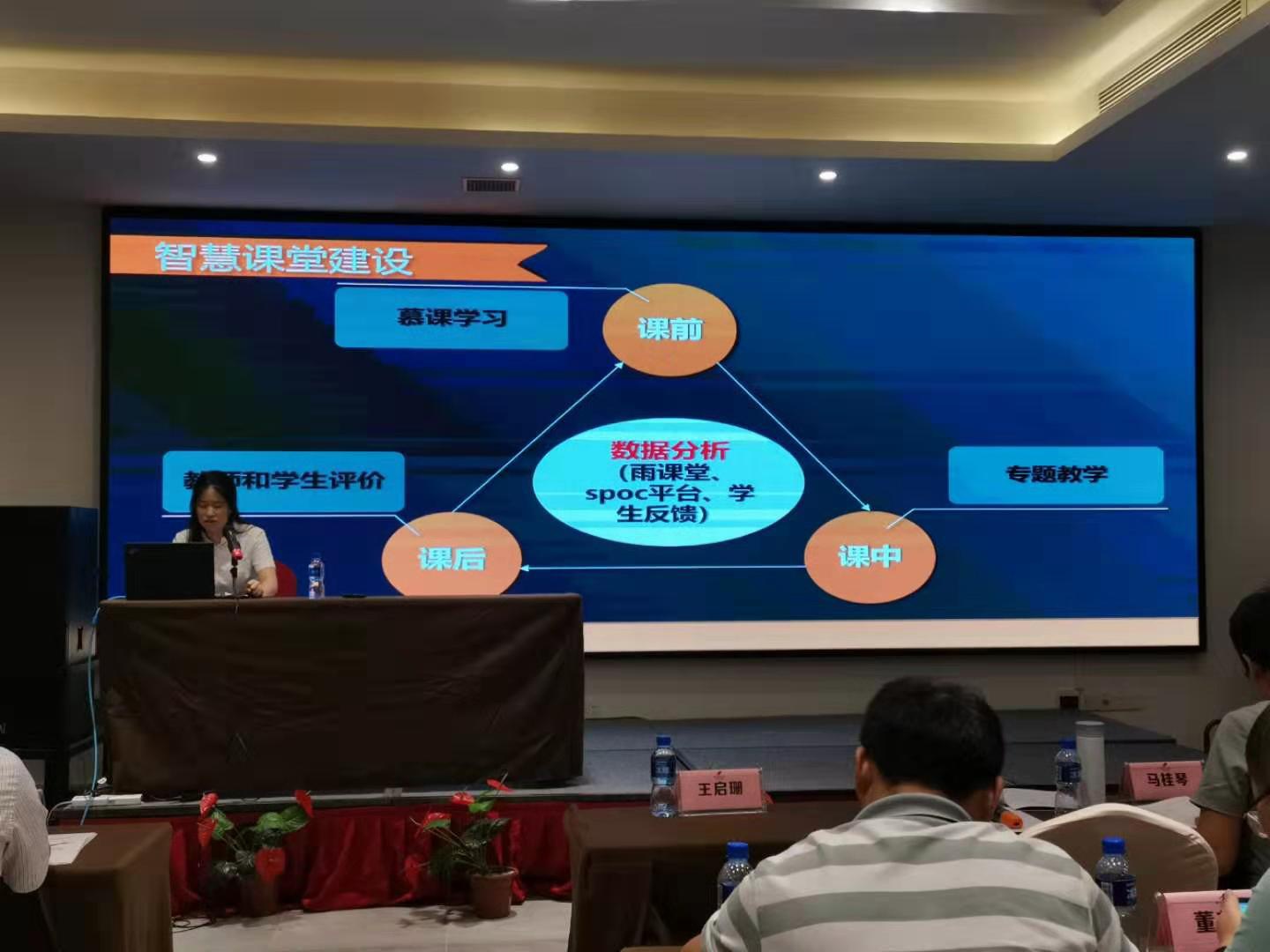 在经验交流环节中,李超超老师介绍我学院建设情况,并分享了基于慕课的思想政治理论课混合式一体化教学改革建设经验。