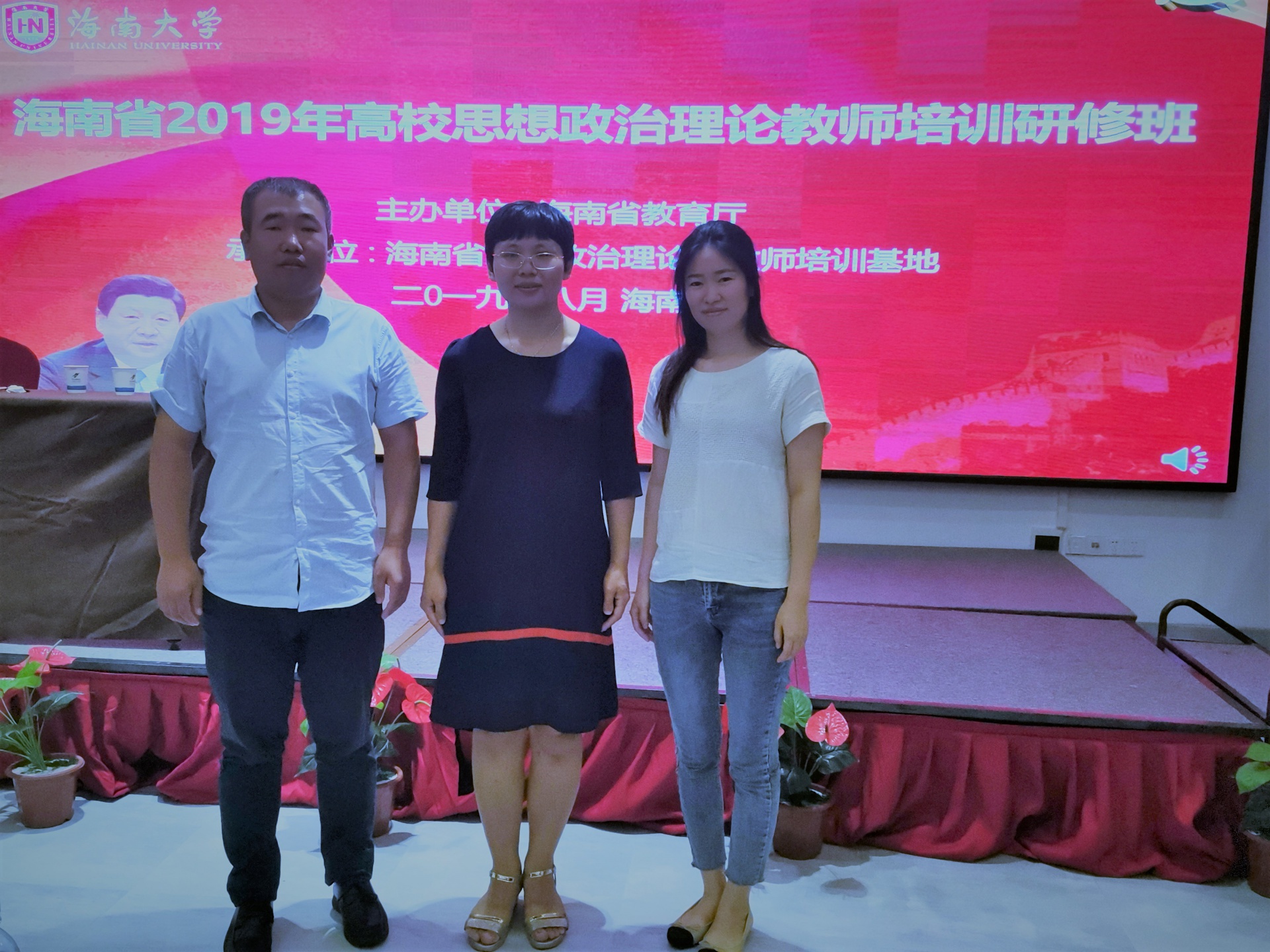 为深入贯彻落实习近平总书记在学校思想政治理论课教师座谈会上的重要讲话精神,推进新时代海南省高校思想政治理论课教育教学改革创新和协同建设工作,搭建我省高校思想政治理论课教师相互交流学习的高水平平台,海南省教育厅主办、海南大学马克思主义学院的2019年海南省高校思想政治理论课教师培训研修班,8月19日至21日在澄迈举办,来自全省各高校的思政课教师代表参加及此次研修班。我院李超超、王蕊蕊、宋浩三位老师参加此次研修班。