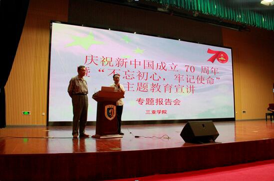 为纪念新中国建国70周年,深入开展“不忘初心 牢记使命”主题教育活动,我校邀请海南大学张朔人教授做题为《初心不忘——自贸区港建设中的海南生态文明建设》主题教育宣讲专题报告会。我院王功名院长主持此次报告会,我院全体教师及全校优秀学生代表500余人参加此次报告会。