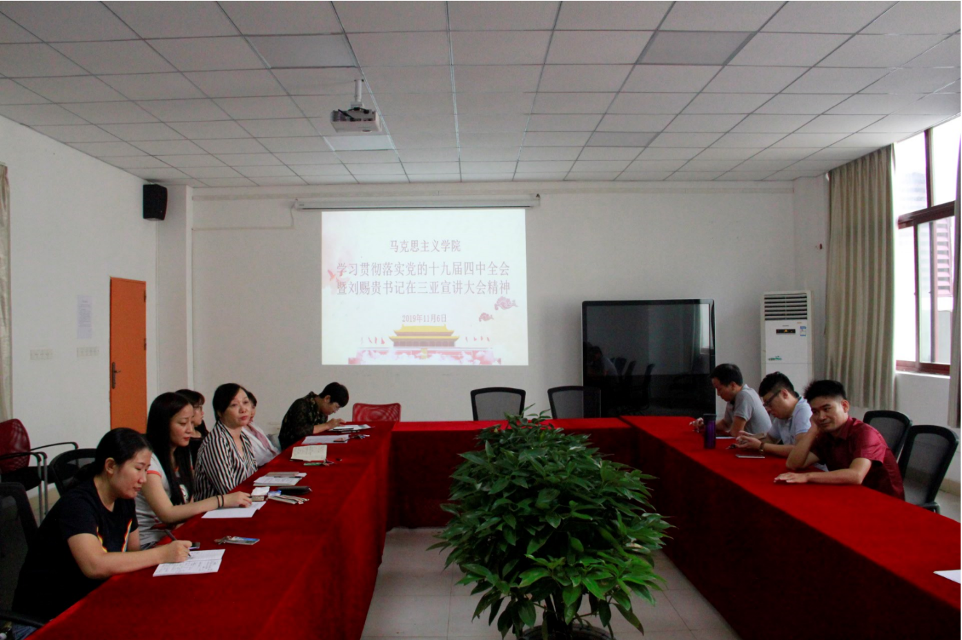 为传达学习党的十九届四中全会精神,11月6日,我院组织全体教师开展十九届四中全会精神专题学习会。会议由马克思主义学院院长兼书记王功名教授主持,马院全体教师参加此次专题学习会。