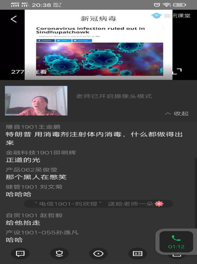 王彦玲老师列举了大量生动的案例分析了这次全球抗疫高扬了马克思主义物质观和科学旗帜,这是人类对自身的最好保护。使学生深入了解了各国必须摒弃病毒神创论,积极应对疫情,抗击疫情必须遵从消耗最小又最无愧于人类本性的规律,人类能够生生不息、接续发展,得益于努力发挥着能动性,人类要共同保卫地球家园,不仅要处理人与自然关系,还要处理好人与人的关系,恐怕一些国家必须放弃资本利润最大化,进行生产方式变革才能完全做到。讲座中师生交流互动,气氛热烈。