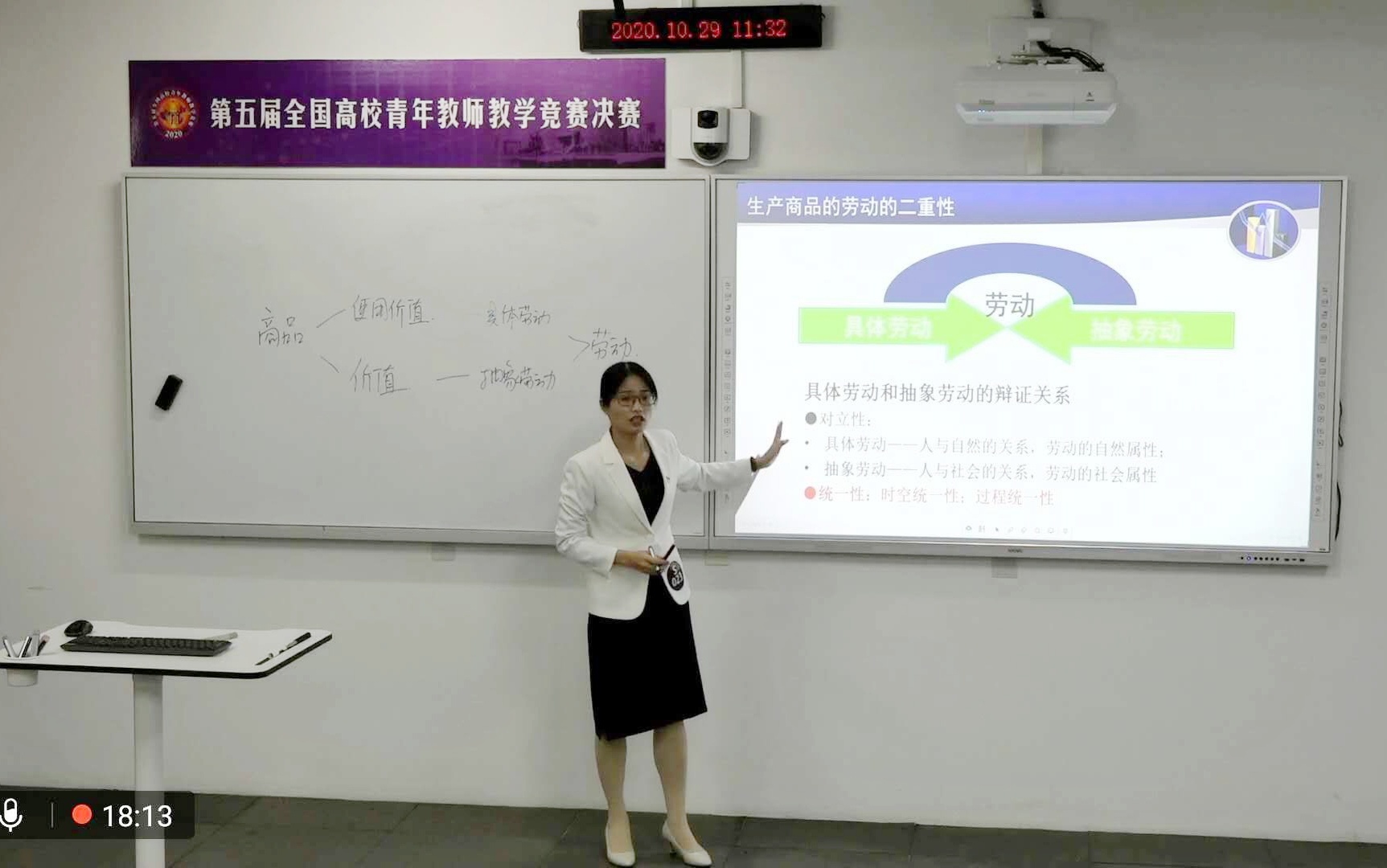 此次竞赛内容包含教学设计、教学演示和教学反思三个环节,要求选手提前完成20节段的教学设计和教学课件,所有教学设计参与评分,并且从20节段的教学课件中随机抽取1讲在比赛现场进行教学演示。虽然比赛前期需要进行大量的资料准备工作,但刘霞老师不惧艰难、精益求精,在深耕教材、吃透书本的基础上,精心选取内容节段,反复修改教学设计和教学课件,并在教学比赛中自如、精湛地完成了教学演示,其扎实的教学基本功和强大的心理素质,在赛事网络直播中获得了观众的好评。