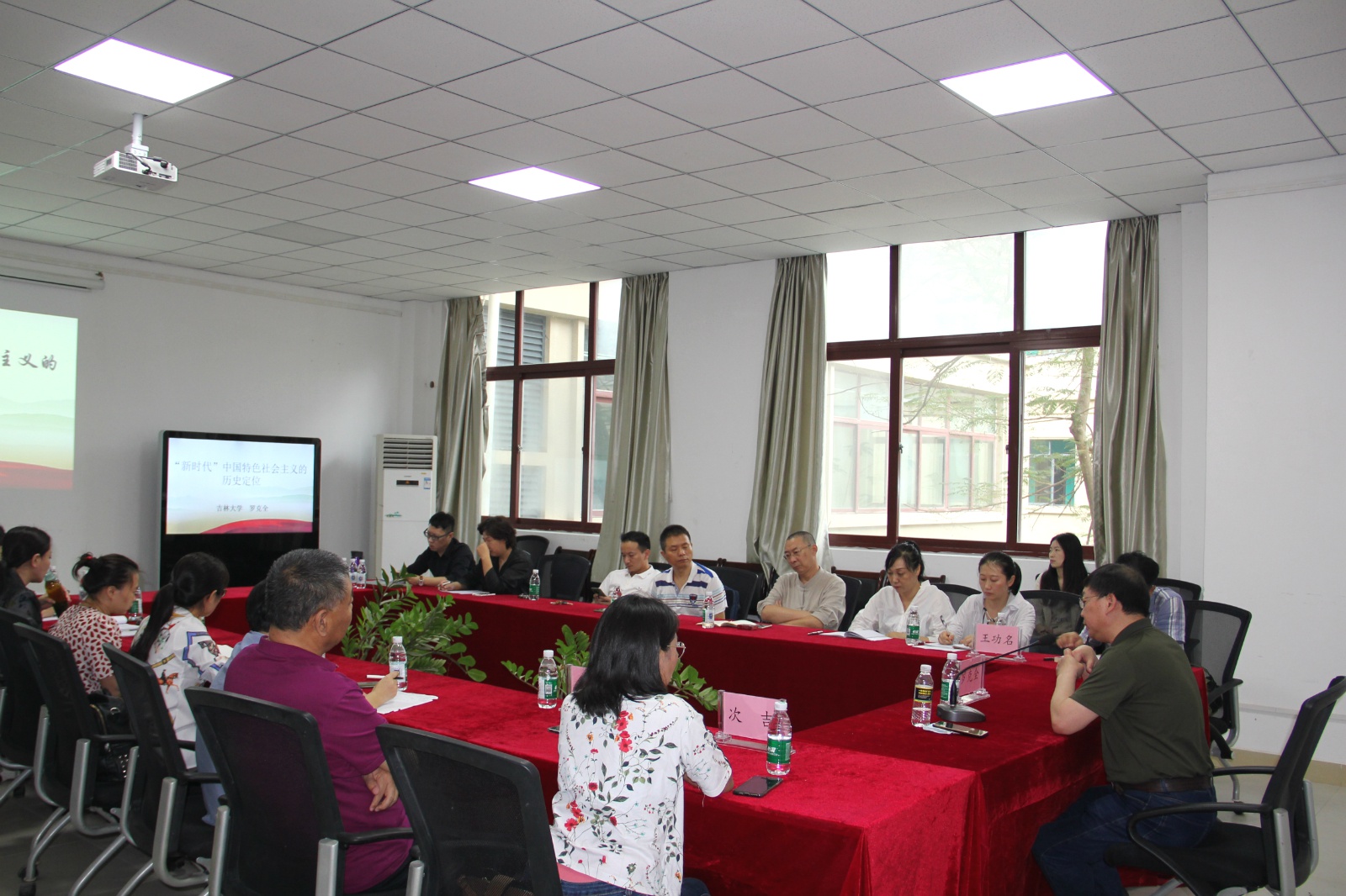罗教授在本次讲座的讲授主题是“新时代中国特色社会主义的历史地位”,他围绕社会主义历史发展主线,结合马克思主义相关理论,以风趣幽默的方式从“如何理解社会主义及其历史发展”、“如何理解中国化马克思主义”、“如何理解中国特色社会主义”、“如何理解‘新时代’中国特色社会主义及其历史任务”四个方面深刻阐述了中国特色社会主义的优越性、建设中国特色社会主义的价值意义。与会教师现场提出了诸多问题,罗教授都一一做了详细解答。