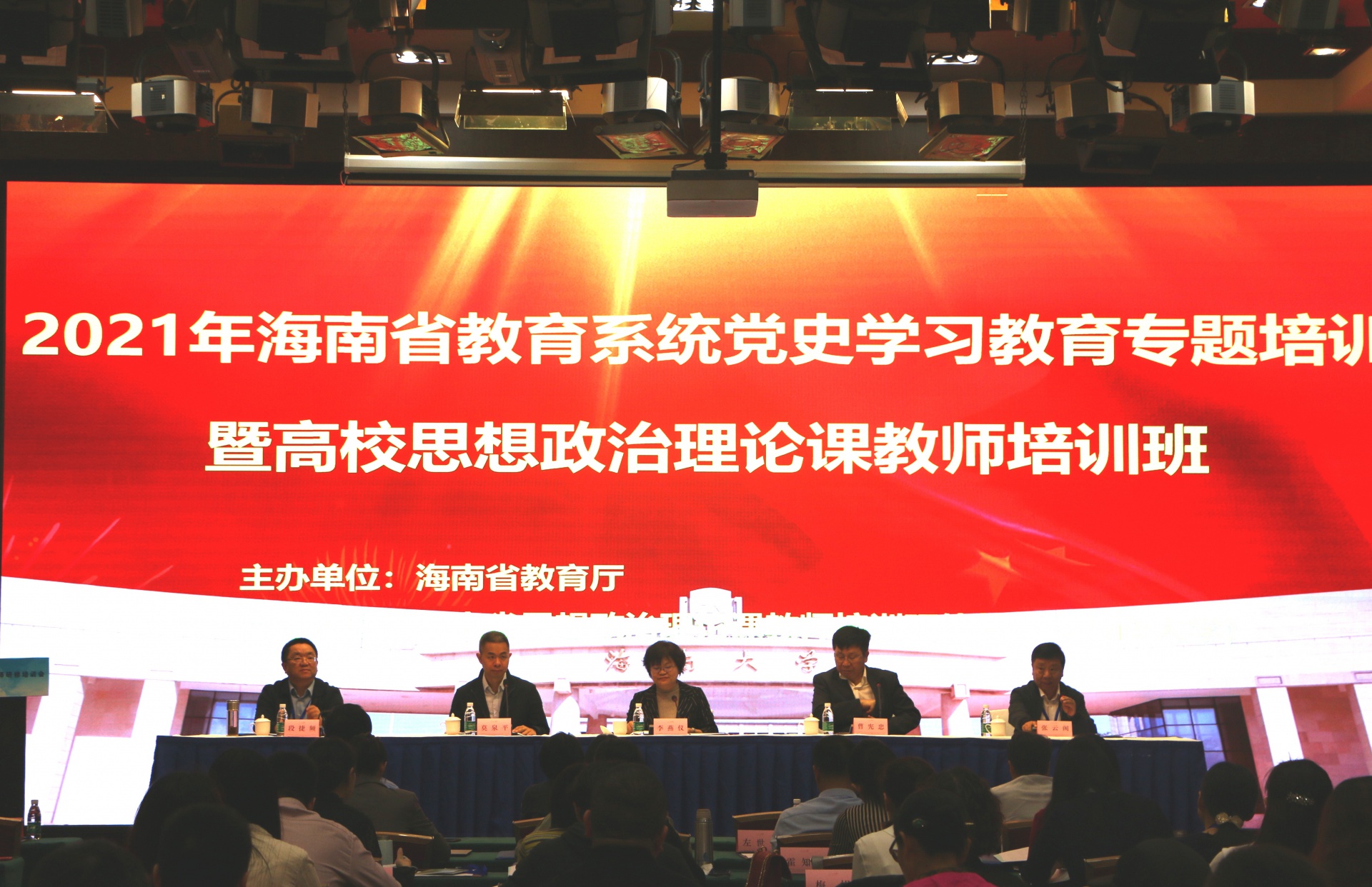 2021年03月25日-28日,由海南省教育主办、海南省思想政治理论课教师培训研修基地(海南大学)承办的“海南省教育系统党史学习教育专题培训暨高校思想政治理论课教师培训会”在海南·澄迈召开。海南省教育厅副厅长李燕仪、海南省教育厅党委办公室(思想政治教育处、省委教育工作领导小组秘书组办公室)主任莫泉平、海南大学党委常委副校长曹宪忠、海南大学马克思主义学院党委书记段捷频、海南大学马克思主义学院院长张云阁等领导出席会议,海南高校100余名思政课骨干教师参加了本次培训。