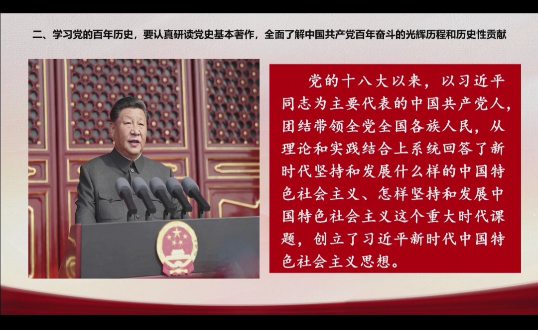 通过观看学习,参会教师进一步明晰了党史学习教育的重大意义、重点任务和工作要求。这是一次知史鉴今、观照未来的历史教育课,是砥砺初心、牢记使命的党性修养课,为学院开展学习教育提供了根本遵循:聚焦党史学习教育重点,突出学史明理、学史增信、学史崇德、学史力行,引导党员教师深刻领会习近平新时代中国特色社会主义思想,牢记初心使命,弘扬革命精神,提高政治意识和政治能力。