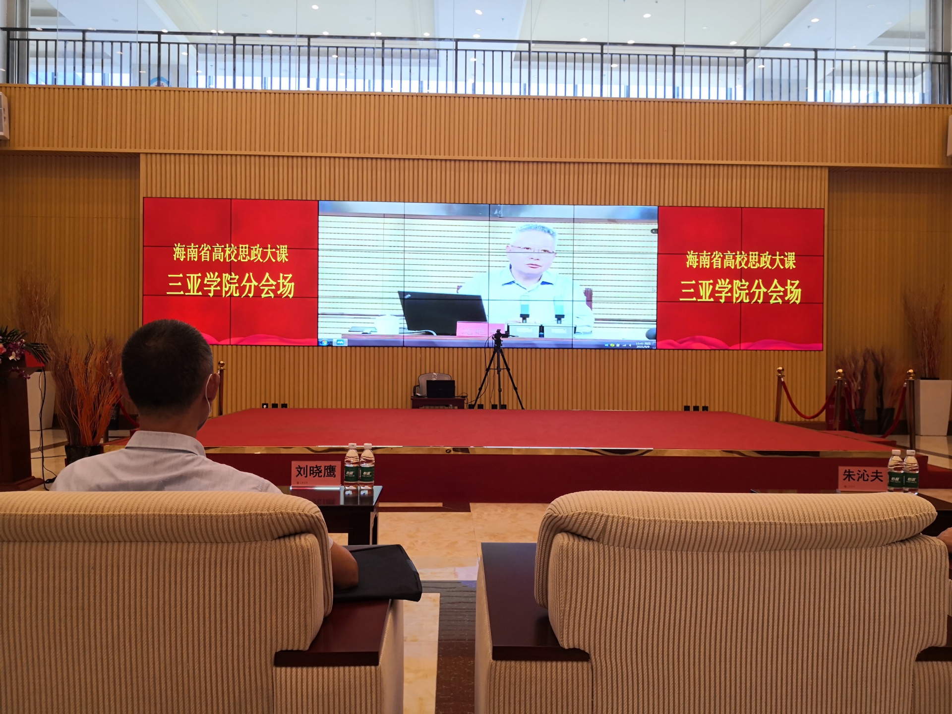 为深入贯彻习近平总书记关于高校思想政治工作重要论述,切实发挥高校思政课教师关键作用,奋力开创海南教育对外开放思政工作新格局,9月9日,在全国第37个教师节来临之际,省委书记沈晓明以视频会议方式给全省高校领导班子成员、马克思主义学院负责人和思政课教师讲授一堂自贸港思政大课。我院全体教师参加了视频会议,收听收看沈晓明书记的思政课。
