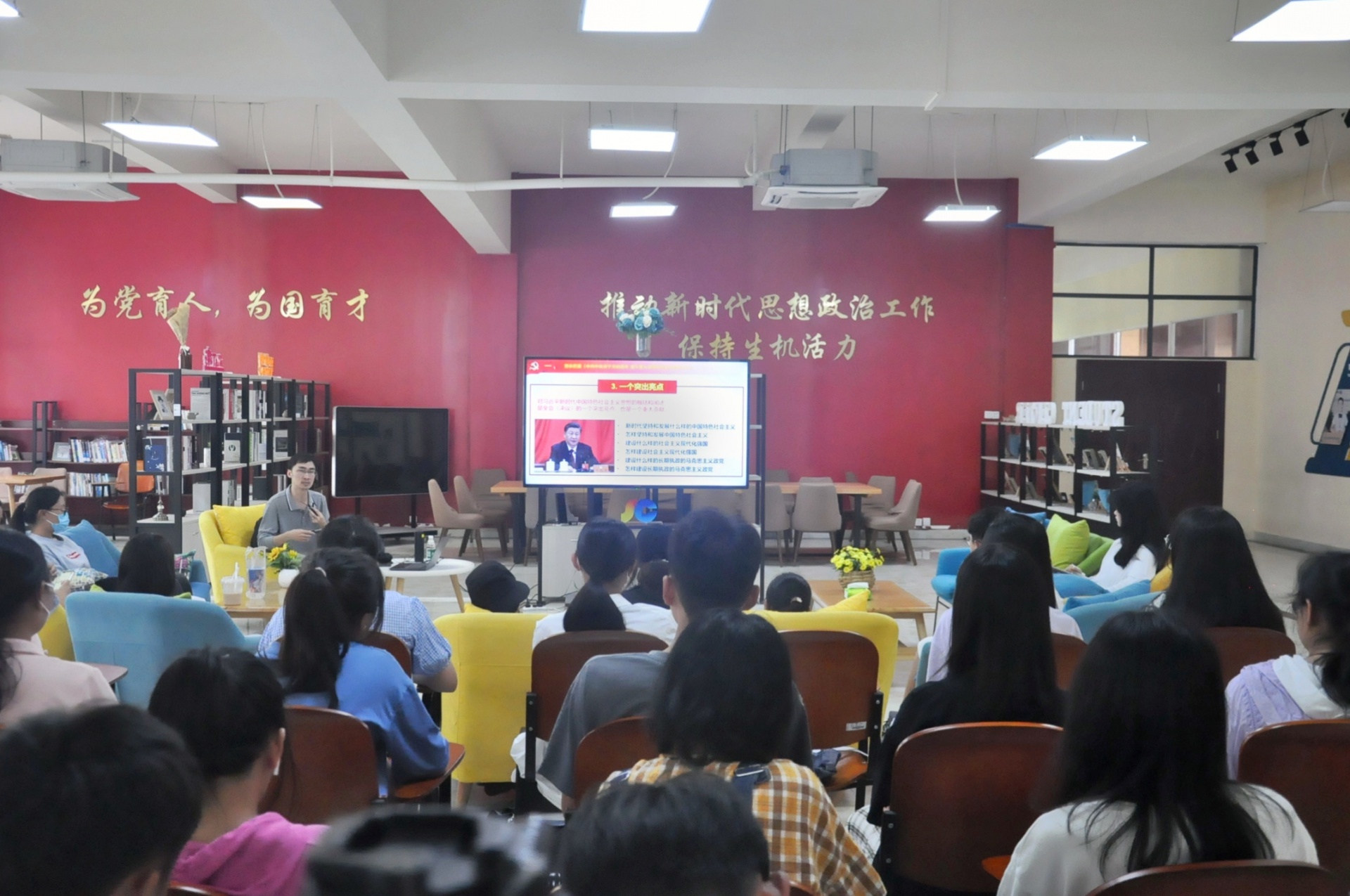 12月22日下午,天涯讲坛“学党史”系列讲座在学生中心开讲。马克思主义学院王世闻老师做题为“数读党的十九届六中全会”的专题报告。
