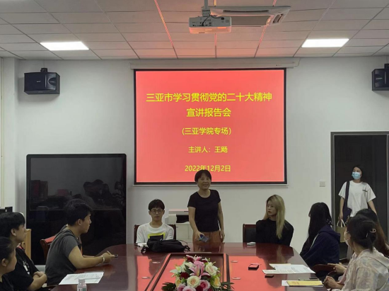 王飏老师的讲座内容主要就2022年10月召开的党的二十大精神学习,主要由“过去五年的工作和新时代十年的伟大变革”“新时代中国特色社会主义理论开辟了马克思主义新境界”“新时代新征程中国共产党的使命任务”“加快发展新格局 着力推动高质量发展”等四个部分组成。这次讲座紧紧围绕刚刚胜利闭幕的中国共产党第二十次全国代表大会主题精神,密切联系海南自贸港建设的发展机遇,对会议精神进行了学习。