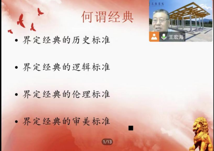 最后,王宏海教授对本次报告“经典解释与社会变迁”做了小结。我们之所以研读经典,在于道在经典;之所以研究经典,在于人在经典;之所以研发经典,在于继往开来;之所以体悟经典,在于智在经典;智慧的生活在于知在经典、行在经典,期望大家知行合一,做最好的自己。