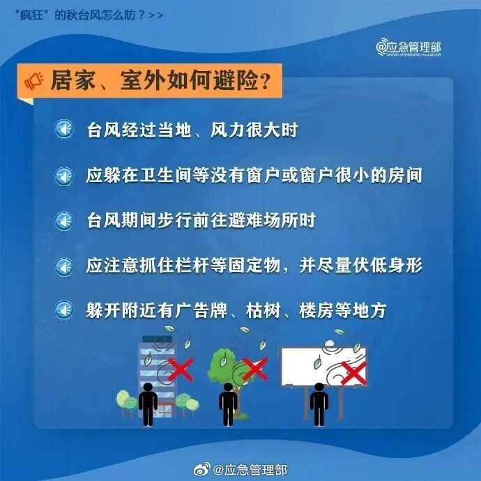 台风期间,风力强劲,雨量充沛,尽量待在室内,避免前往海边、河边、树下、广告牌周边等危险区域。
