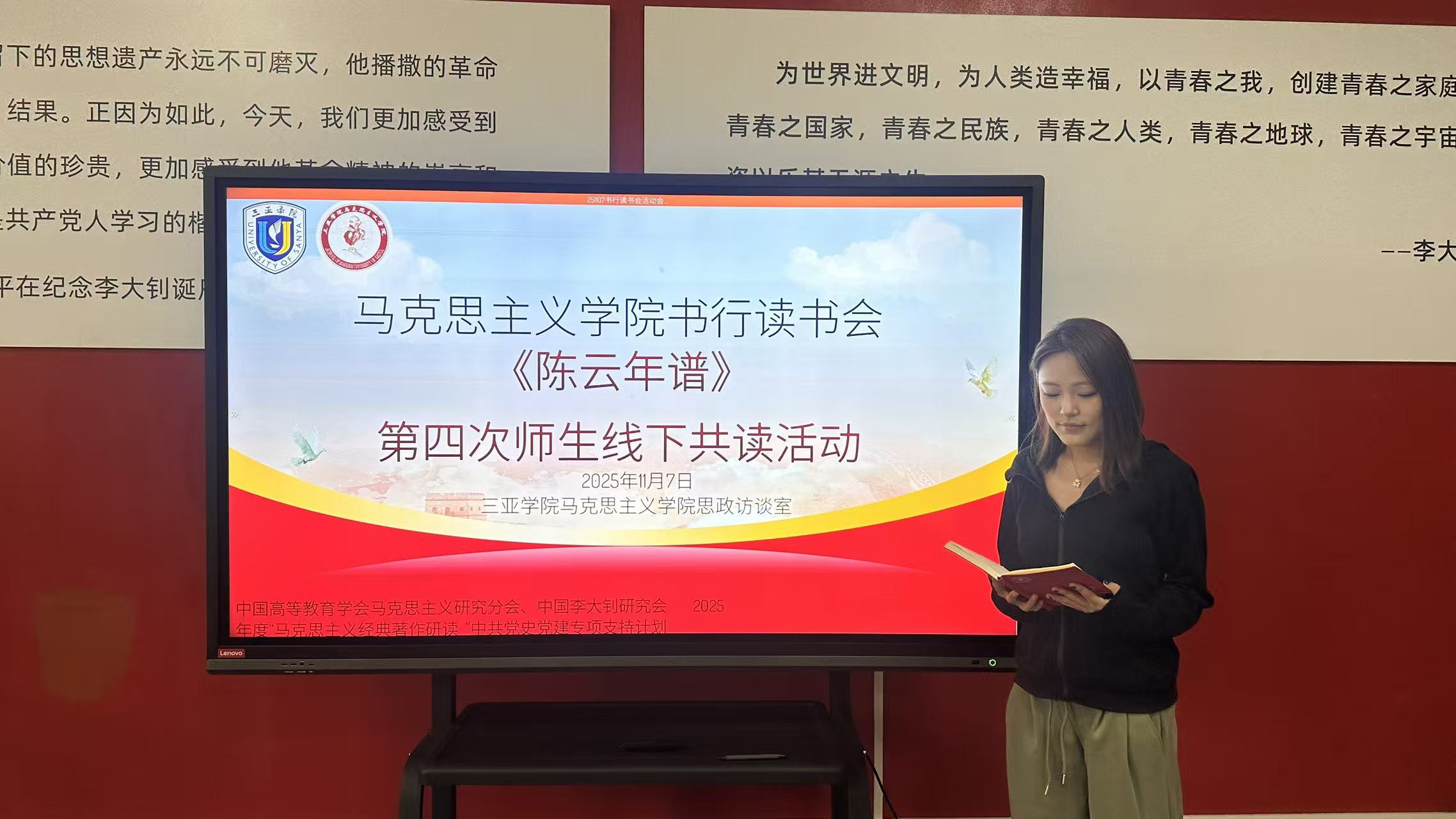 为进一步落实马研会、中国李大钊研究会2025年度“马克思主义经典著作研读”中共党史党建专项支持计划,推动学生经典阅读与专业科研工作实现高质量跨越,我院书行读书会于2025年11月7日下午开展《陈云年谱》第四次师生共读活动。本次活动由读书会指导教师庞道晶副教授主持,读书会全体成员参与。