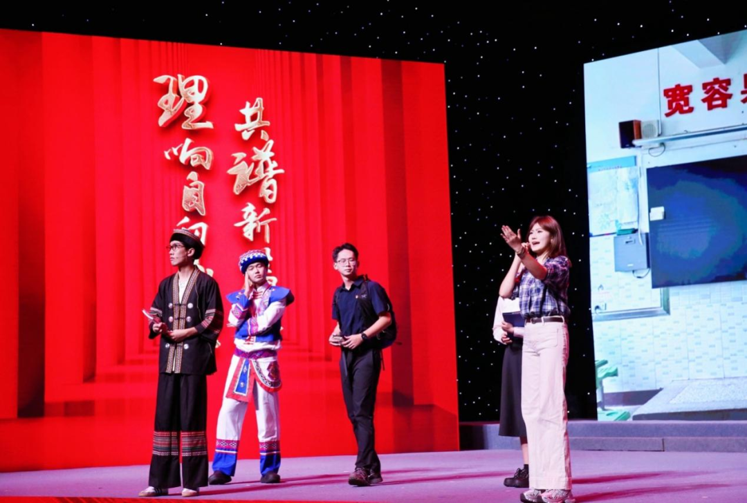 半决赛现场,党员干部、企业职工、高校师生、百姓名嘴等各行业、各系统的基层宣讲员基于理论传播的现实需要不断探索宣讲形式,成功打造“文艺+”的理论宣讲场域。我院大学生理论宣讲团以《“吉”雨润之 教育有我》为题,创新采用“理论宣讲+沉浸式情景剧”的方式,讲述了海南教师克服万难、跨越山海帮扶四川凉山州教育的生动故事,让教育家精神走进大众心中,在海南加快建设教育强省的关键时期凝聚起携手办好海南教育的信念。
