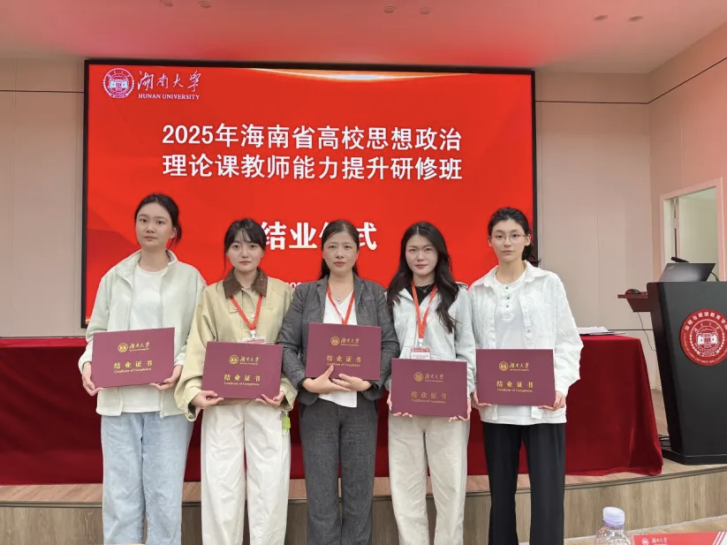 11月10日,马克思主义学院王艳辉、郑钿晓等5名教师赴长沙参加2025年海南省高校思政课教师能力提升研修班。研修围绕党的二十届四中全会精神、AI赋能思政课等核心模块,以专家授课、案例研讨等形式开展,我院教师孙舒婷、郑钿晓作为小组代表结课发言。此次研修不仅深化了教师对思政课本质与使命的理解,提升了自贸港背景下讲深讲透讲活思政课的能力,还促进了院校间交流。教师们表示,将把所学融入课堂,着力建设有价值、有温度、有力量的思政“金课”,切实承担起为党育人、为国育才的光荣使命,为我院思政课高质量建设与落实立德树人根本任务注入新动力。