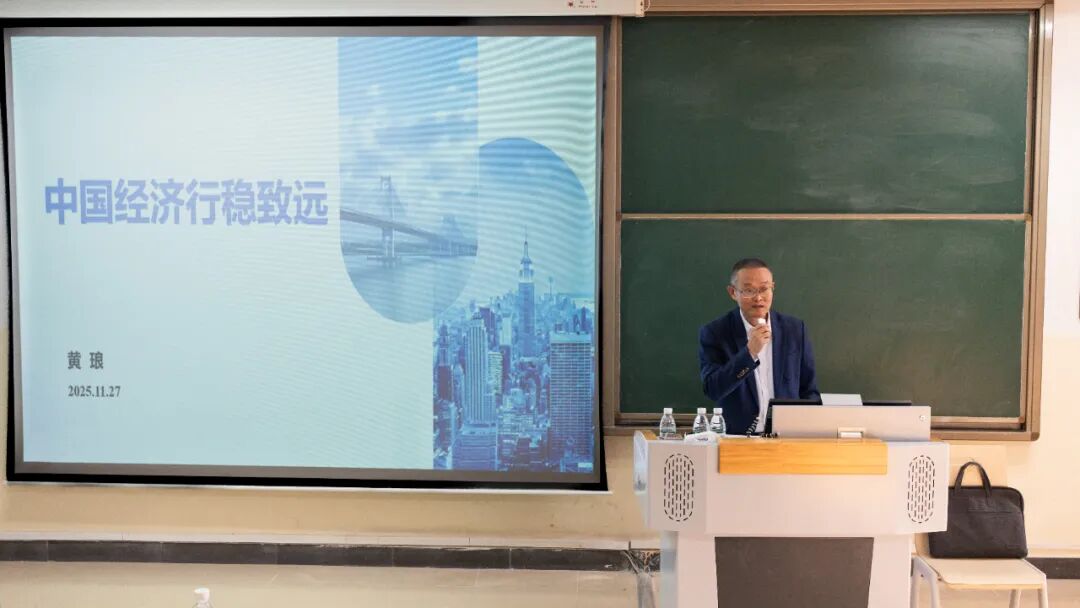 11月27日,海南省政协副秘书长黄琅赴我校讲授“中国经济行稳致远”思政金课。课程围绕世界经济特征、中国经济成就、经济发展基石展开,结合海南自贸港建设解读政策内涵。黄琅纠正思政课认知误区,用数据与模型解读经济逻辑,以问题引导学子探寻发展本质,勉励学子把握自贸港机遇,将个人成长融入国家发展。授课深入浅出,实现了“理论清醒、政治坚定、行动自觉”的育人目标。