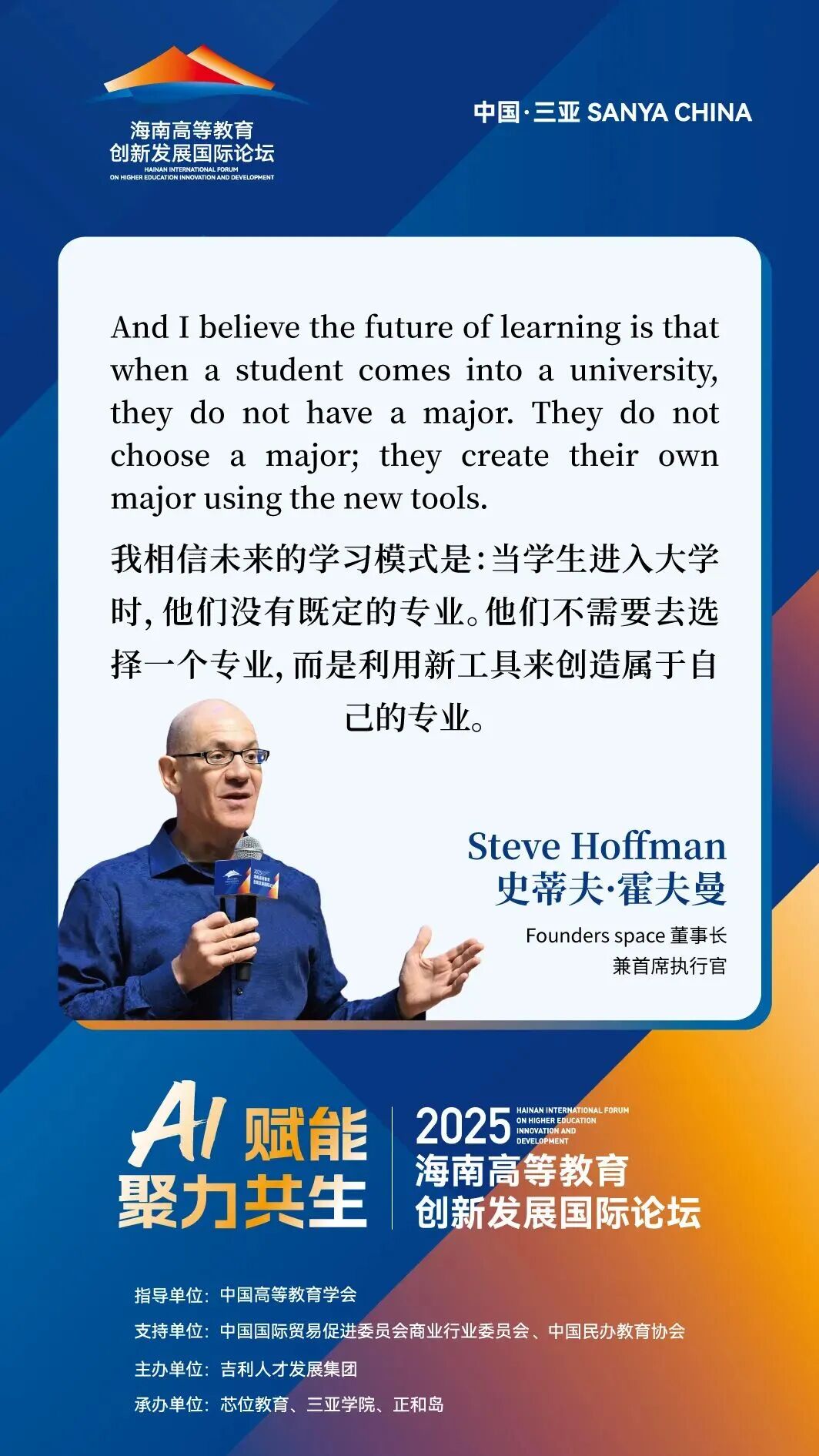今天,我们在崖州湾科技城创建了大共享加小学院的人才培养模式,几十所国内外知名高校课程跨校共选,学分互认,近万名三亚专项研究生成为自贸港建设强有力的人才支撑。国家实验室在三亚拔地而起,科技城正加速建成南繁深海科技创新高地和教育科技人才一体化创新发展的先锋区。而三亚学院则是AI突破发力,推动教育回归本质,用一生一策回应千人千面。这些教育创新不仅服务海南,也为全球教育的转型提供了中国智慧。
