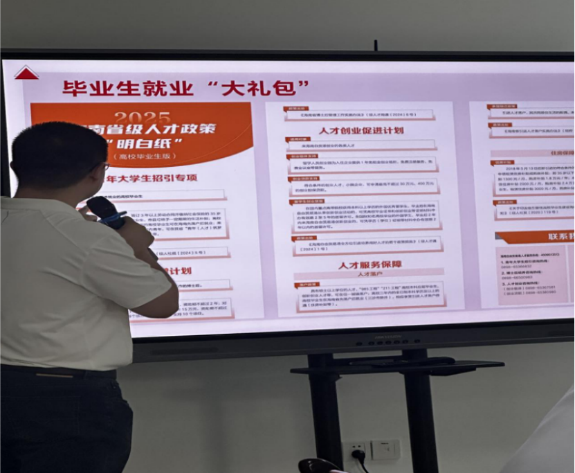 针对三亚创业就业优势,李雨航校友进行了详细解读。他介绍,三亚中央商务区以现代商贸、金融服务等为主导,崖州湾科技城则聚焦种业、深海科技等领域,入驻园区的企业可享受税收、子女入学等多项优惠政策;在人才政策方面,高校毕业生在三亚就业创业可获得生活补贴、落户便利、住房补贴等支持,三亚安居房价格远低于商品房,为青年人才扎根三亚解决了后顾之忧。