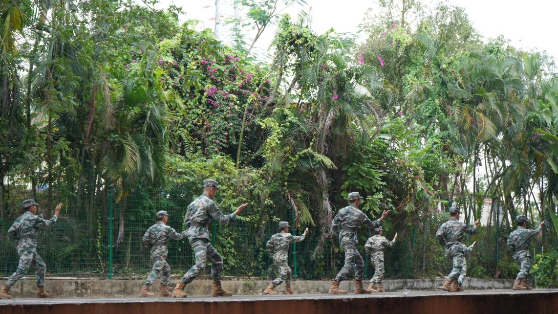 仪式最后,吉阳区人民武装部副部长颜业强作总结讲话。他对大会筹备工作及现场展现的良好氛围给予肯定,随后郑重宣布:“2025级学生军训正式开始!” 大会结束后,各学院队伍在教官带领下,有序前往指定训练场地展开训练。