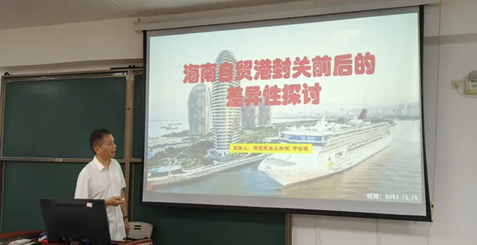 2025年12月16日,马克思主义学院于世高老师面向35名不同专业学生开展讲座,围绕八大核心模块解读2025年12月18日海南封关关键节点,阐释“封关是自贸港‘成人礼’”的内涵。封关前依赖国家政策扶持,封关后将接轨国际规则、拥有广泛自主权。师生热烈互动,帮助学生清晰认识封关带来的重大政策调整,深化对自贸港建设意义的理解。