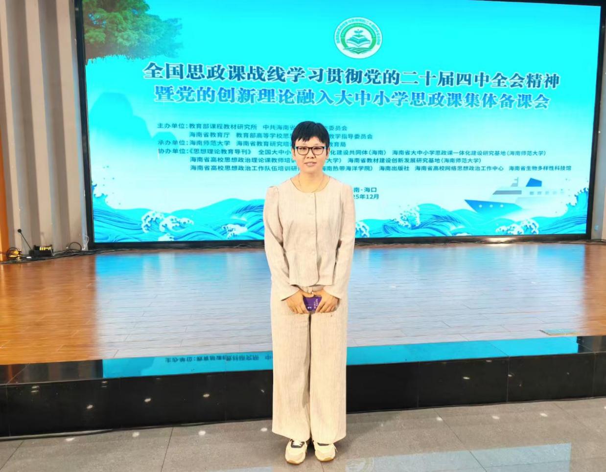 近日,全国思政课战线学习贯彻党的二十届四中全会精神暨党的创新理论融入大中小学思政课集体备课会在海南举行,我院院长助理王蕊蕊副教授参会,与全国思政教育同仁共研育人之道、共探教学创新。