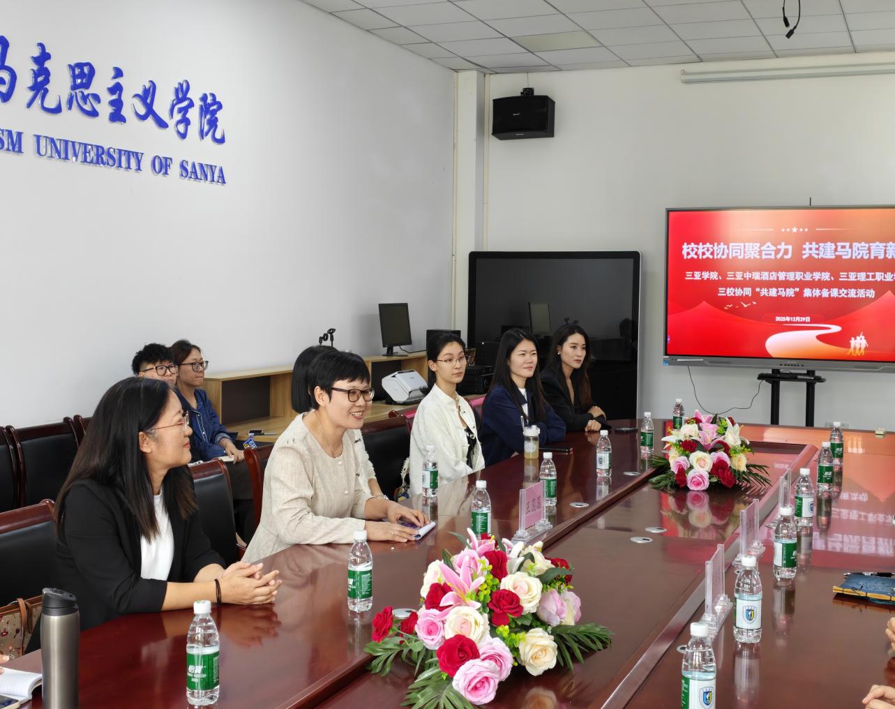 为深入贯彻习近平总书记关于学校思政课建设的重要指示精神,落实省级示范马克思主义学院建设相关部署,推动三亚地区高校思政教育高质量发展,2025年12月29日,三亚学院、三亚中瑞酒店管理职业学院、三亚理工职业学院三校“共建马院”校校协同集体交流暨实践研学活动在三亚学院成功举办。三校思政课教师代表齐聚一堂,共话思政教育创新,共探协同育人新路径。