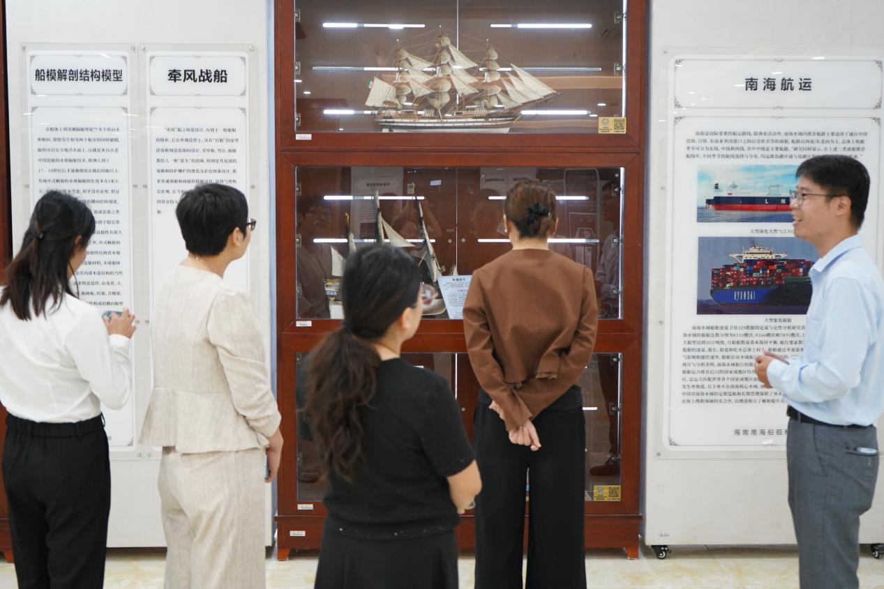 在实地研学环节,三校教师代表先后走进三大特色教育阵地,沉浸式感受思政教育的多元魅力。在思政访谈室,直观感受“实践+创新”的思政教学新模式,学习将抽象理论转化为具象体验的教学方法;在中国李大钊研究会海南教研基地,循着“播火者”的革命足迹,通过实物展品、历史影像与沉浸式讲解,深入感悟李大钊先生“铁肩担道义,妙手著文章”的革命情怀与真理追求,汲取红色基因中的育人力量;在南海船舰科技馆,通过王伟聪老师的讲解,让老师们在海洋文化与历史遗存的浸润中,了解到南海人文历史、海上丝绸之路发展脉络,强化了国家主权意识与文化自信,体会到爱国主义教育与地域文化传承的深度融合。实践研学活动为在场教师带来了“实景课堂”的教学启发与实践思路。