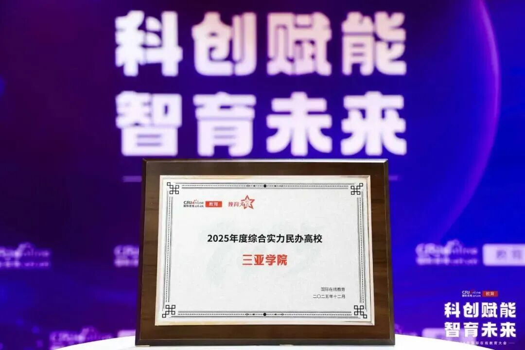 与此同时,在各大权威媒体平台的年度教育盛典中,三亚学院同样捷报频传:在央广国际在线教育相关评选中,获评“2025年度·综合实力民办高校”;