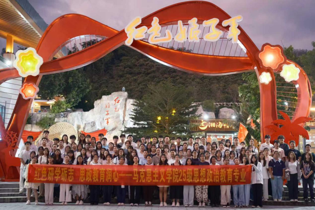 为深入贯彻“把红色资源利用好、把红色传统发扬好、把红色基因传承好”的重要精神,推动“产教融合、协同育人”走深走实,马克思主义学院领导、教师及2025级思想政治教育专业全体新生一行,赴红色娘子军演艺公园开展了一场以“沉浸式体验、场景化育人”为主题的红色研学实践活动,成功打造了一堂“行走的思政金课”。
