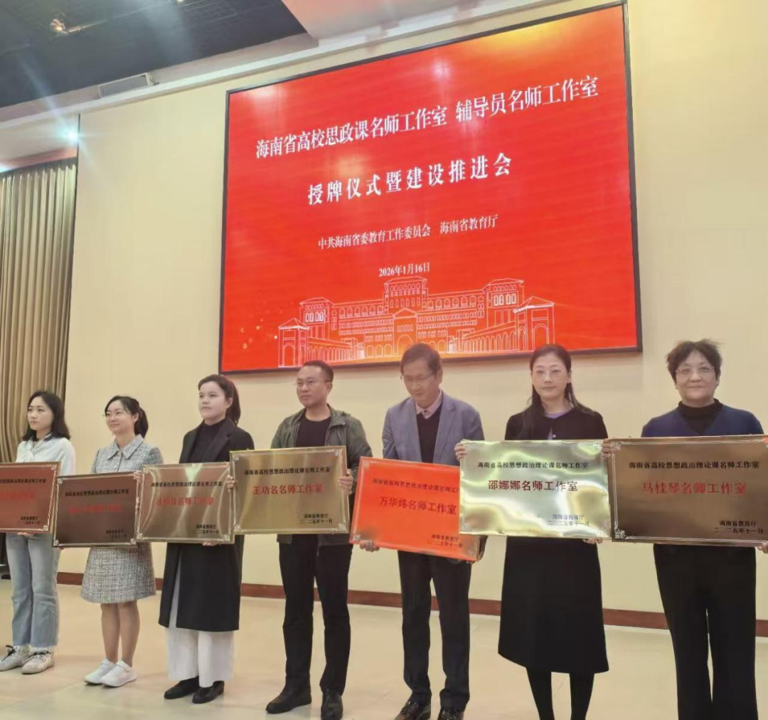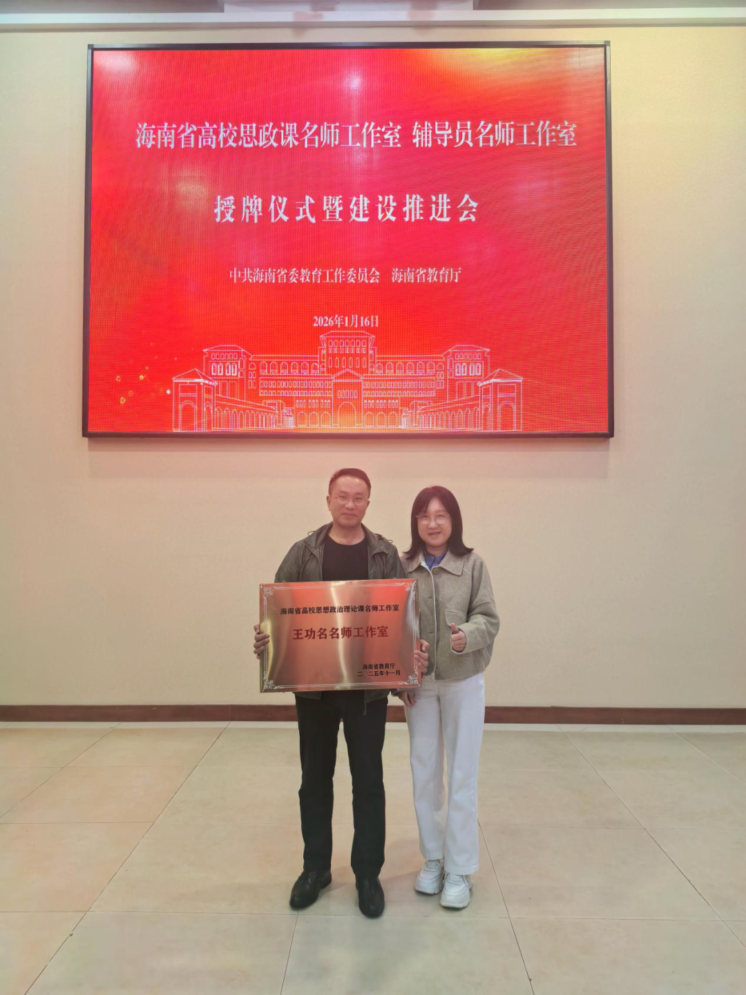 1月16日,海南省高校思政课名师工作室、辅导员名师工作室授牌仪式暨建设推进会在海南大学举行。会上,三亚学院马克思主义学院王功名教授申报的思想政治理论课名师工作室正式获批立项,成为全省高校思政工作“领头雁”团队之一,将为海南自贸港背景下高校思政教育创新发展注入新动能。三亚学院副校长高一兰作为学校代表参加授牌仪式。