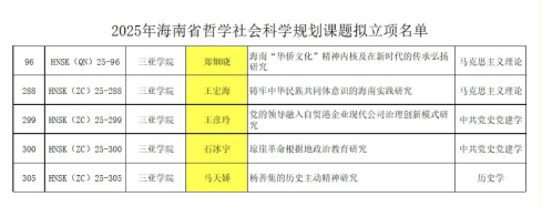 学院科研工作坚持“面向需求、聚焦特色、提升层次”,在高级别科研项目立项中屡创佳绩。在2025年度海南省哲学社会科学规划项目立项公示中,我院5项高质量课题成功获批立项,涵盖中华民族共同体建设、自贸港治理、革命根据地教育、地方文化传承、历史人物精神研究等前沿领域,包括《铸牢中华民族共同体意识的海南实践研究》《党的领导融入自贸港企业现代公司治理创新模式研究》《琼崖革命根据地政治教育研究》《海南“华侨文化”精神内核及在新时代的传承弘扬》《杨善集的历史主动精神研究》等标志性课题。