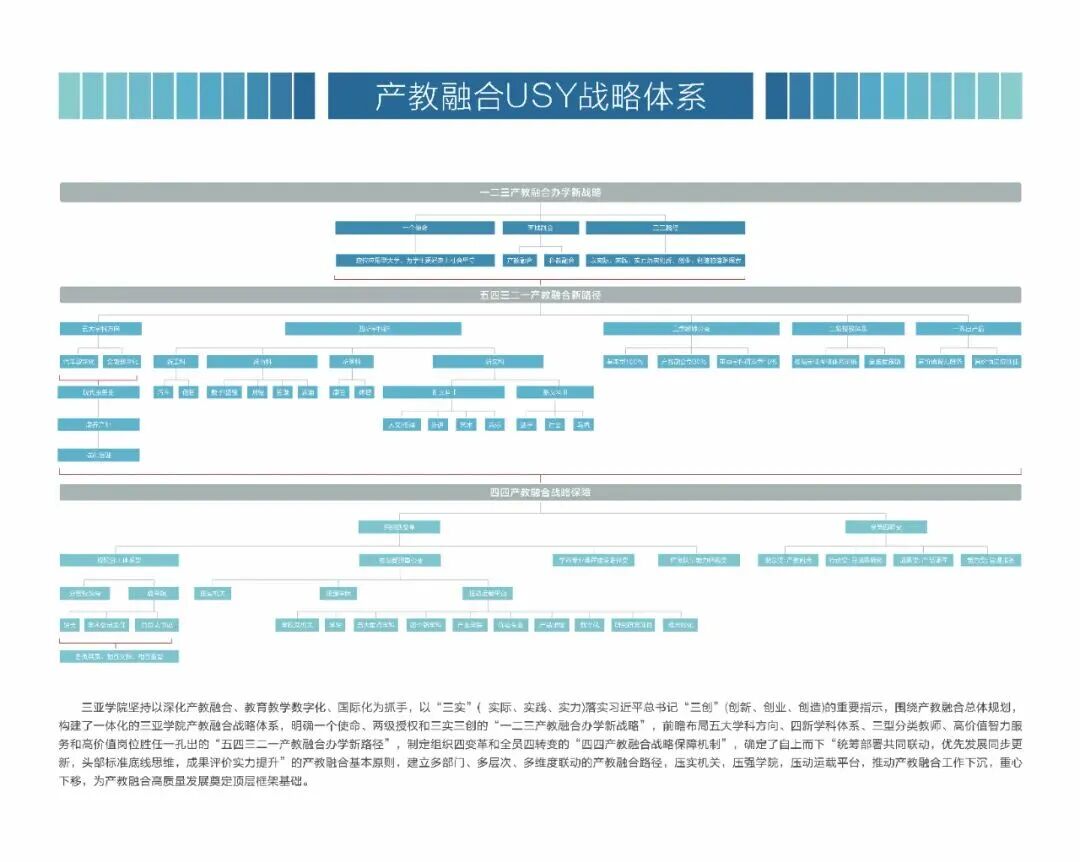 学校人才培养打破传统教育边界,构建“项目导向-课程重构-校企协同-成果转化”四维模式,实现USY产教融合人才培养全生态,将企业真实业务场景、实际需求与学校教学场景、人才供给有机衔接,实现教育链和产业链的相互转化。2021年,海南省教育厅将支持三亚学院现代产业学院建设纳入年度工作要点。
