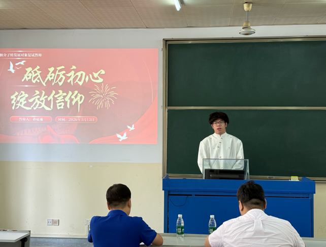 答辩环节中,六位同学身着正装、精神饱满,依次上台进行个人陈述与现场答辩。大家围绕入党动机、思想学习、工作实践、生活作风及未来努力方向展开汇报,结合自身在理论学习、志愿服务、班级工作、学科竞赛等方面的经历,分享思想觉悟提升与综合能力成长历程,深刻表达向党组织靠拢的坚定决心与为同学服务的责任意识。同学们态度诚恳、思路清晰,既全面总结自身优势与进步,也客观反思存在不足与改进方向。在场师生认真聆听、客观评议,现场氛围庄重而热烈。此次答辩既是对候选人综合素质的全面考察,也是一堂生动的党性教育课,进一步帮助在场同学明确党员标准、强化责任担当。