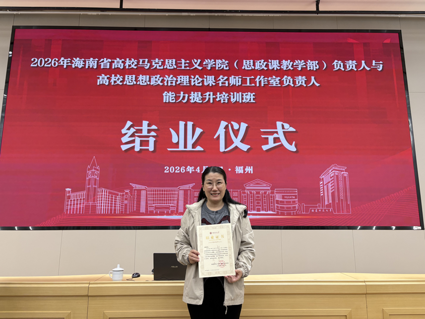 为深入学习贯彻习近平新时代中国特色社会主义思想,全面落实立德树人根本任务,持续提升高校思想政治理论课教师的教学能力与育人水平,近日,马克思主义学院院长赵晓乐教授与名师工作室骨干教师马天娇,赴福建师范大学参加由省委教育工委、省教育厅主办的《2016年海南省高校马克思主义学院负责人与高校政治理论课名师工作室负责人能力提升培训班》专题培训。我院院长赵晓乐受邀在开班仪式上作学员代表发言,分享思政课建设与马院建设的经验与感悟。