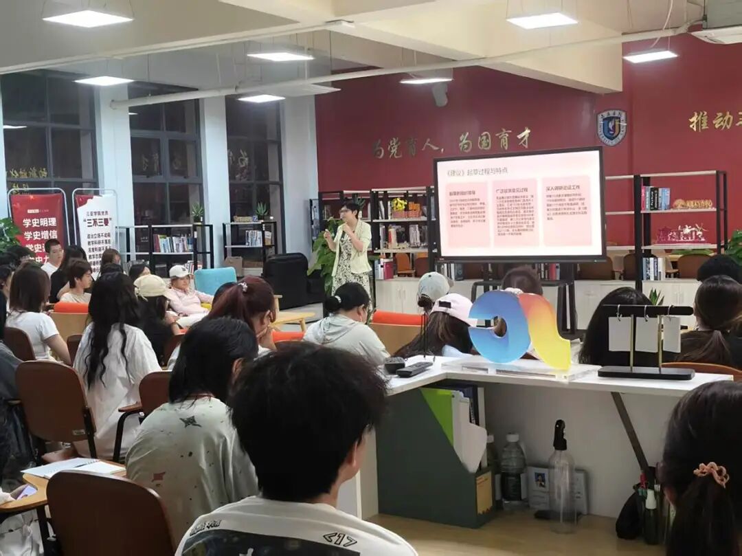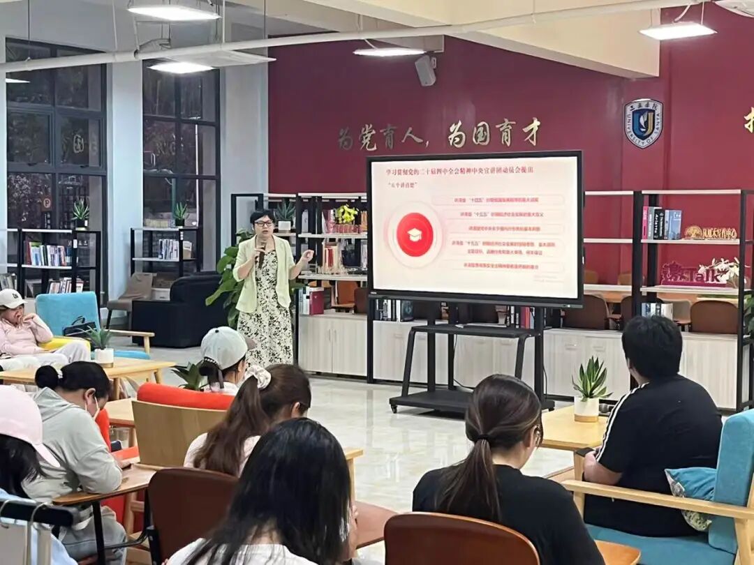 讲座伊始,王蕊蕊老师以时代召唤与青春使命为切入点,深刻阐明党的二十届四中全会在我国“十四五”收官、“十五五”谋篇布局的关键节点召开,具有重大而深远的意义。她系统梳理全会重大意义与历史方位,精准解读全会精神核心要义,帮助同学们清晰把握国家发展的战略方向与时代坐标,深刻认识“十五五”时期在推进中国式现代化进程中承前启后的关键作用。